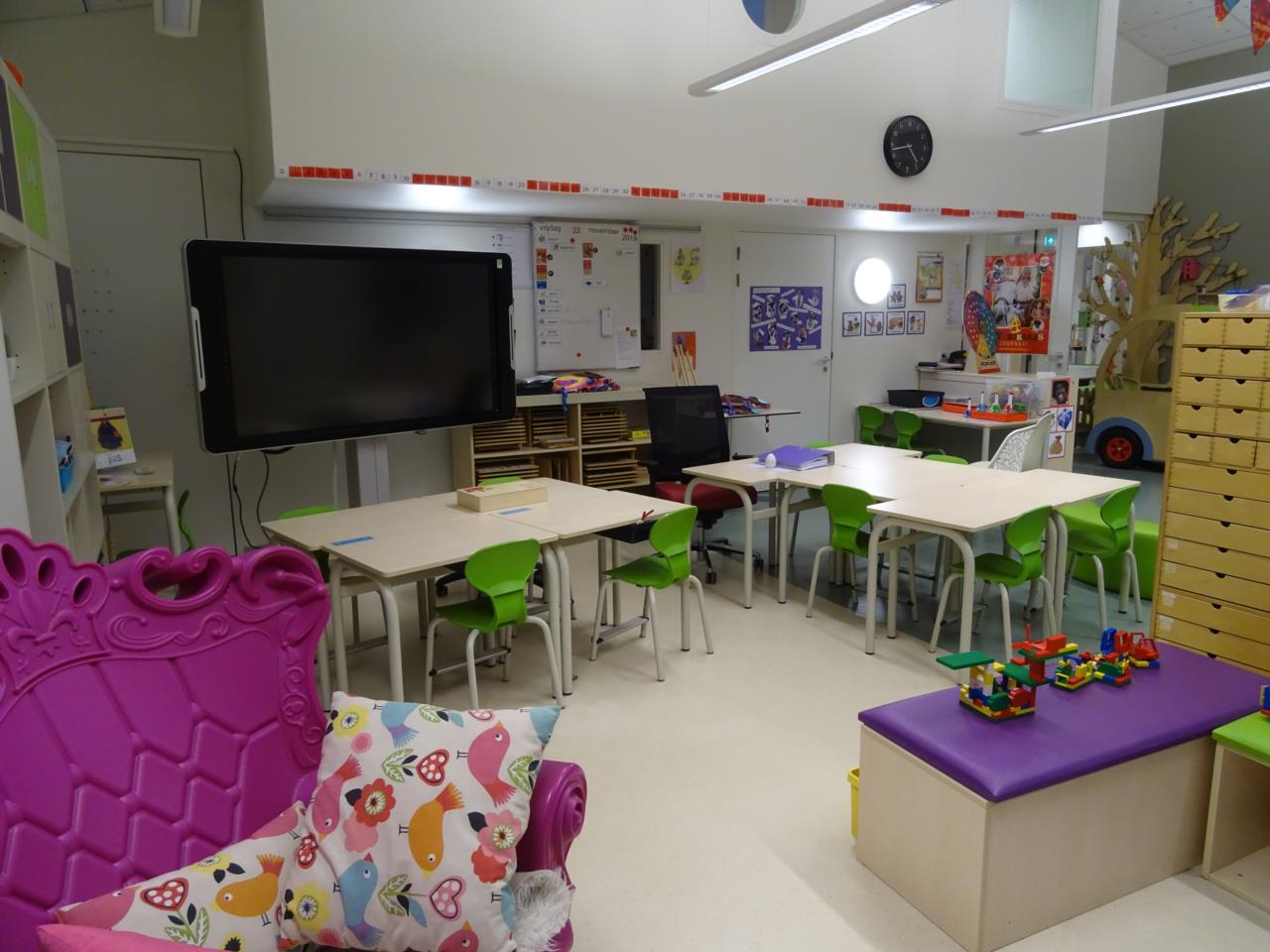 Op maandag (1, 2), dinsdag (1, 2, 3) en woensdag (1, 2) staat juf Willeke voor de groep, maandagochtend (3, 4), woensdag (3, 4), donderdag (1, 2, 3) en vrijdag (1, 2, 3) juf Riëlle. Op maandagochtend en woensdag is de groep gesplitst. Groep 3 zit dan samen met groep 4 in een groep.